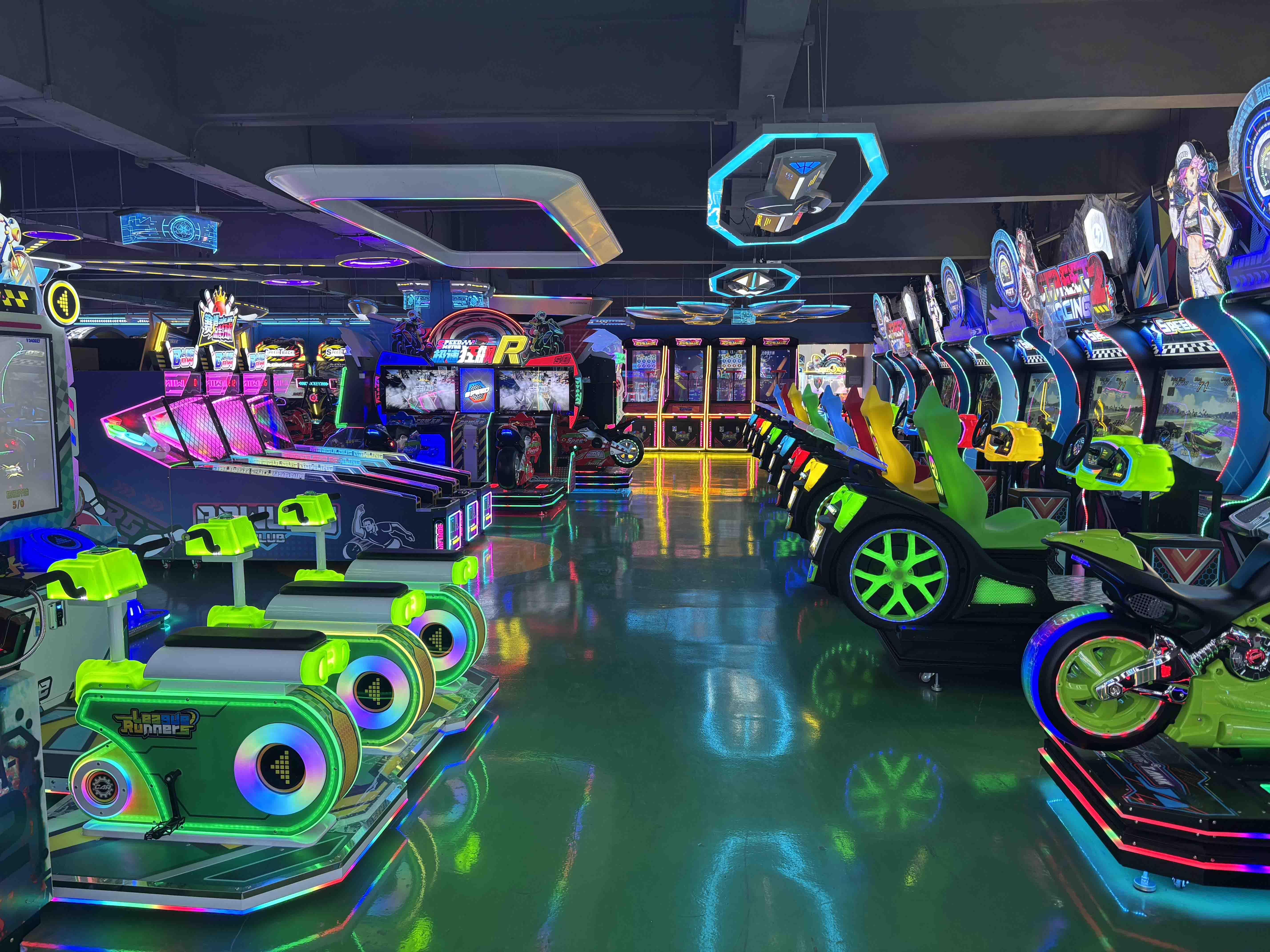 Venue Size: 1,200 sqm | Machine Mix: 5 racing arcade games machines, 4 motorcycle arcade games machines, 6 boxing machines, 8 prize machines